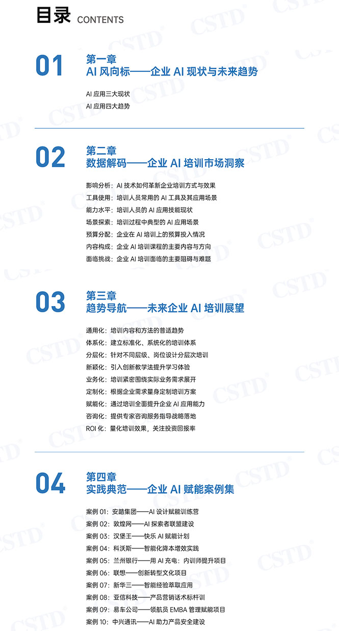 由cstd企业ai赋能研究院编著的《2025中国企业ai赋能白皮书》于2025年3年正式发布。该书总结分析了当前企业ai应用的现状与趋势、ai在企业培训中应用现状、未来企业ai培训展望以及“第九届企业学习设计大赛ai赋能赛区”决赛项目案例,为企业把握ai赋能机遇、实现智能化转型与价值创造的重要参考信息。