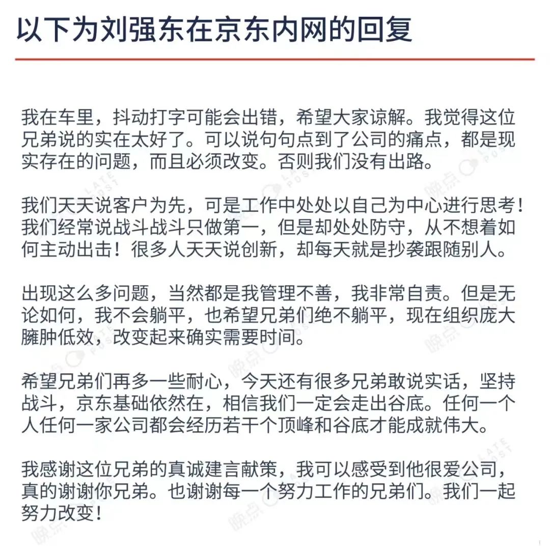 12月9日晚,京东创始人、董事局主席刘强东在内网回复员工时称,“无论如何自己不会躺平,也希望兄弟们绝不躺平,现在组织庞大臃肿低效……京东基础依然在,相信一定会走出谷底。”
