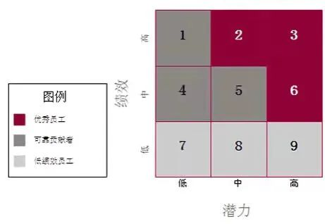 盘点结束后,hrbp给我输出的结果是,九宫格里这个格子的需要重点关注一下,因为他们有离职的倾向;那个格子里的人后面可能要给他们做点服务。