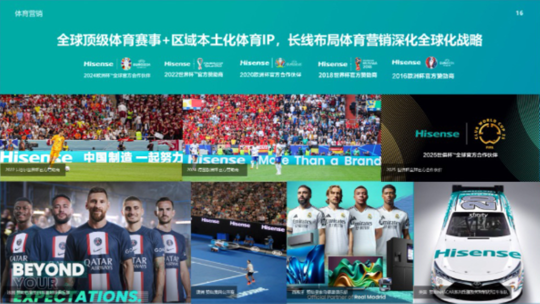 ●渠道选择:根据目标人群偏好布局——海信坚持布局体育营销强化自主品牌建设,先后赞助2016欧洲杯、2018世界杯、2020欧洲杯、2022世界杯、2024欧洲杯等5届世界顶级体育赛事,并成为2025世俱杯全球官方开云下载的合作伙伴,品牌影响力乘势而上闪耀世界舞台。