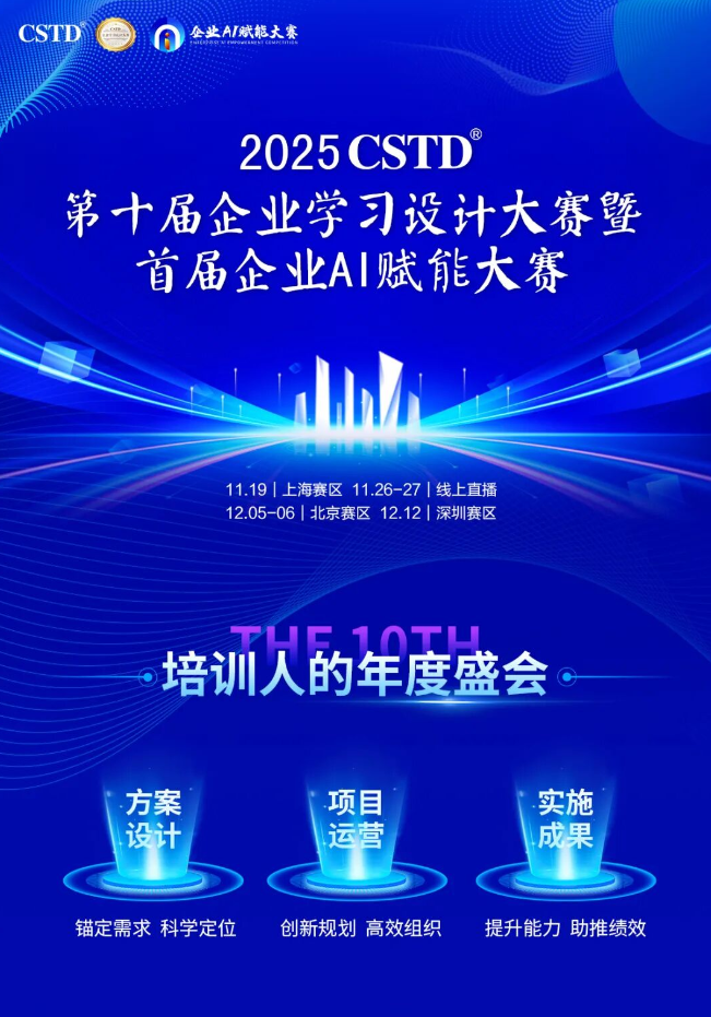 由cstd主办的“企业学习设计大赛”始终秉承“公开透明、客观公正”的原则,评比最具价值的企业学习项目。大赛已连续举办十届,累计1100多家企业申报了2700多个学习项目参赛,共有810多个优秀学习项目进入决赛路演,现场观赛超3.3万人次,被誉为企业培训行业“最具影响力的评比赛事”。第十届企业学习设计大赛于2025年4月全面启动,共收到全国200多个企业学习项目参赛报名,经过评审共62个项目进入决赛。