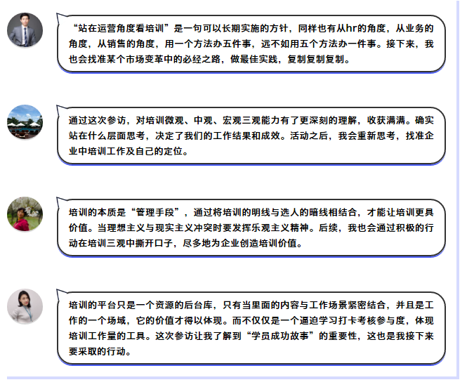 一天的参访活动结束之后,大家在交流群中陆续发表参访感想和行动计划,进行闭环。