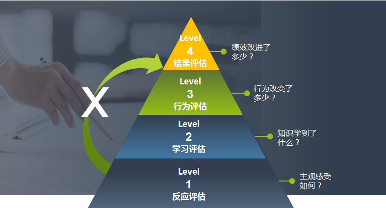 把柯氏评估的一级和二级作为一个整体,这部分解决了“知”的问题,就是解决知识和知道的问题;三级和四级作为一个整体,这个部分是要解决"行"的问题,就是解决行为和结果改变的问题。“知”“行”合一才是我们强调的学习效果。