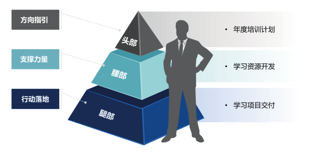我们的经验是,学习地图的落地需要从计划衔接、资源支持、培训交付不同维度来系统化地考虑,形成一个完整的学习地图落地体系,这三个维度落脚在具体要素上即年度培训计划、学习资源开发、学习项目交付。